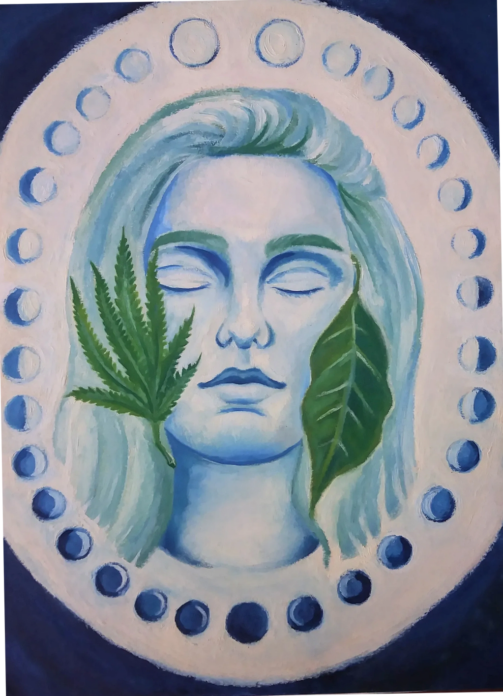 31 phases of the moon spiral through her mind like the smoke of the plants she breathes into her being.