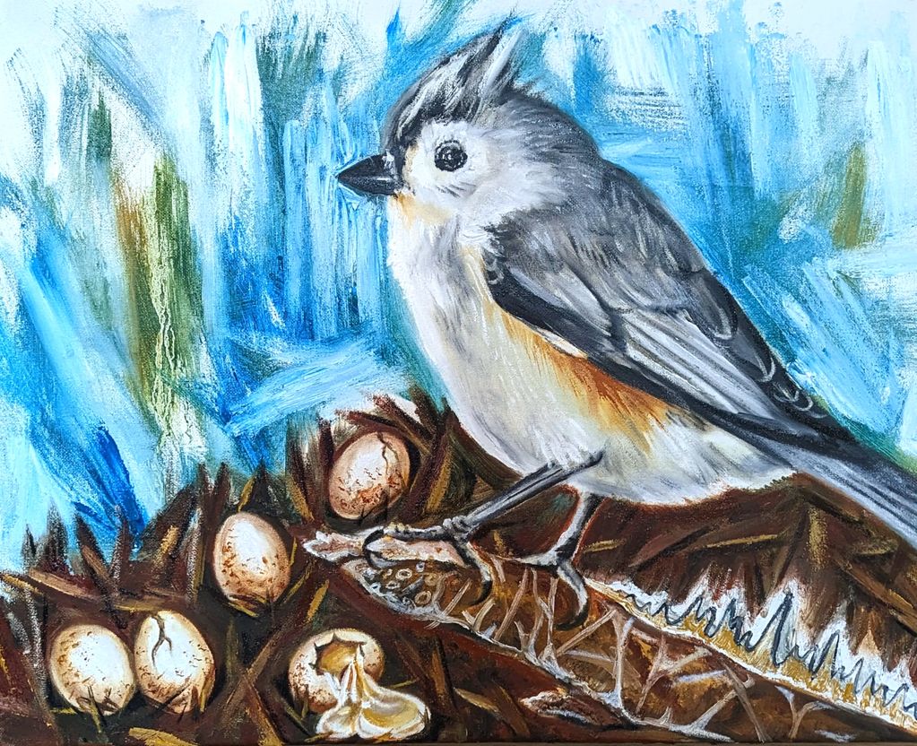 A symbol of spiritual breakthrough, like life cracking out of an egg, this piece combines elements of the bird's song in a wavelength and the pneumatic bone texture.